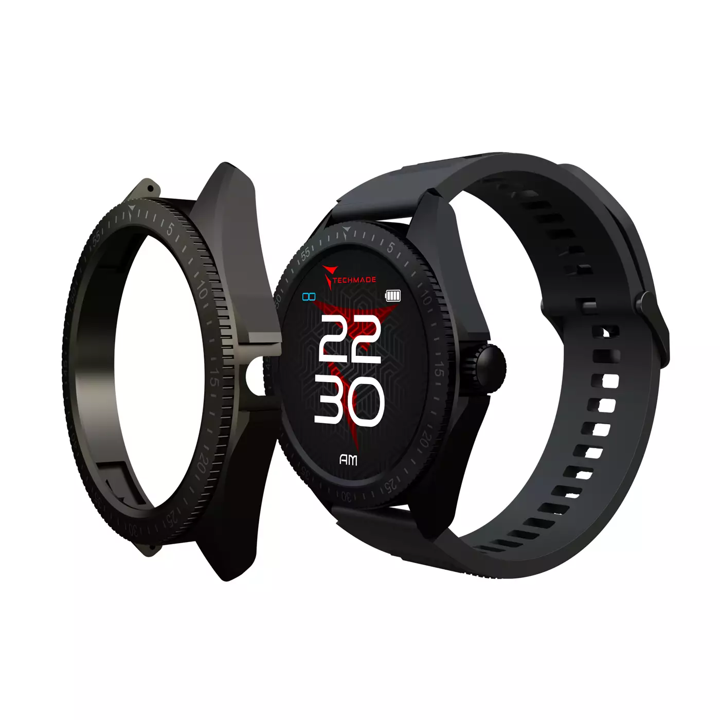 1,43 Amoled näyttö, vesisuojattu IP67, 250mAh Li -polymer akku. Sopivuus IOS 9.0 alkaen, Android 6.0 alkaen. Toiminnat: soitto, viestit, unen seuranta, verenpaine, veren hapetus, syke, askelmittari, kalorilaskuri, etäisyys, sekunttikello, ajastin, istumamuistutus, SOS toiminto, urheilutoiminnot, musiikkisoittimen kaukosäätö, pelit. Useita taulu vaihtoehtoja. Takuu 2 vuotta. Vaihdettava kuori. Musta hihna, musta kansi.