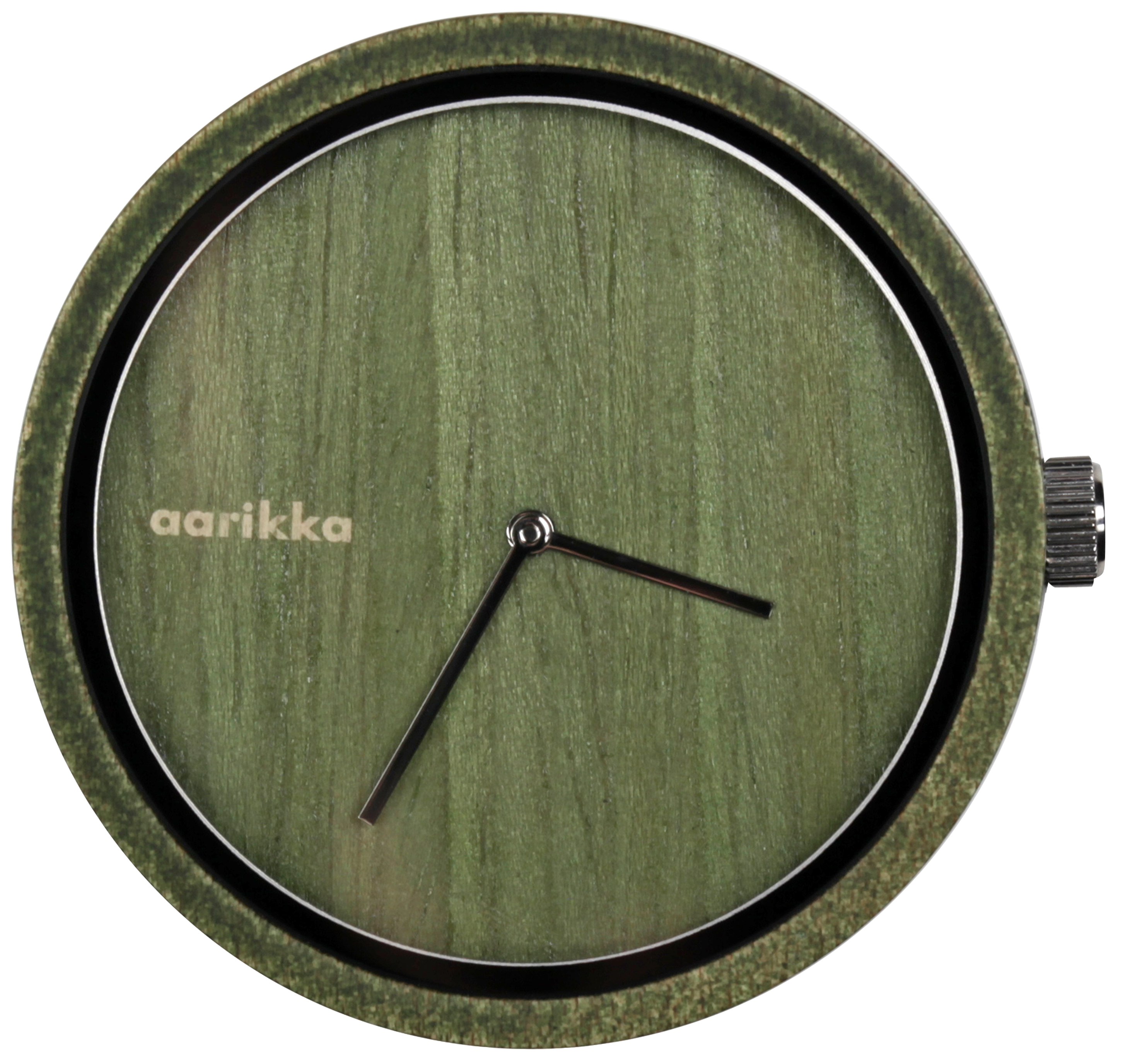 Aarikan Aikapuu-rannekello paitsi pitää kantajansa aikataulussa, täydentää se myös näyttävällä olemuksellaan asukokonaisuuden. Ajattoman rannekellon kellotaulu on kaunista puuta ja rento ranneke on kankainen.