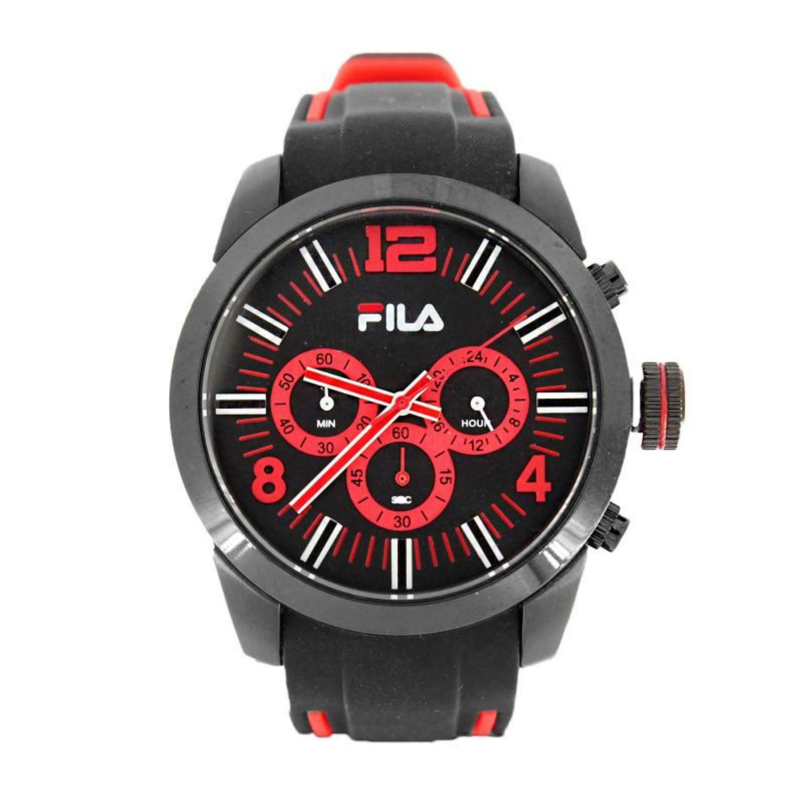 Nyt löydät myös tyylikkäät ja sporttiset Filan kellot City Kullan valikoimasta! Tyylikäs puna-musta rannekello on varusteltu mineraalilasilla sekä roiskevesisuojalla. Kellon sydämenä sykkii tarkka kvartsikoneisto. Sporttista kellotaulua korostavat kolme käytännöllistä chrono-näyttöä. Tämän lisäksi, urheilullisen ulkonäön viimeistelee miellyttävä silikoni-ranneke. Upea Fila-rannekello on monikäyttöinen katseenvangitsija, joka on valmiina kaikkiin tilanteisiin!