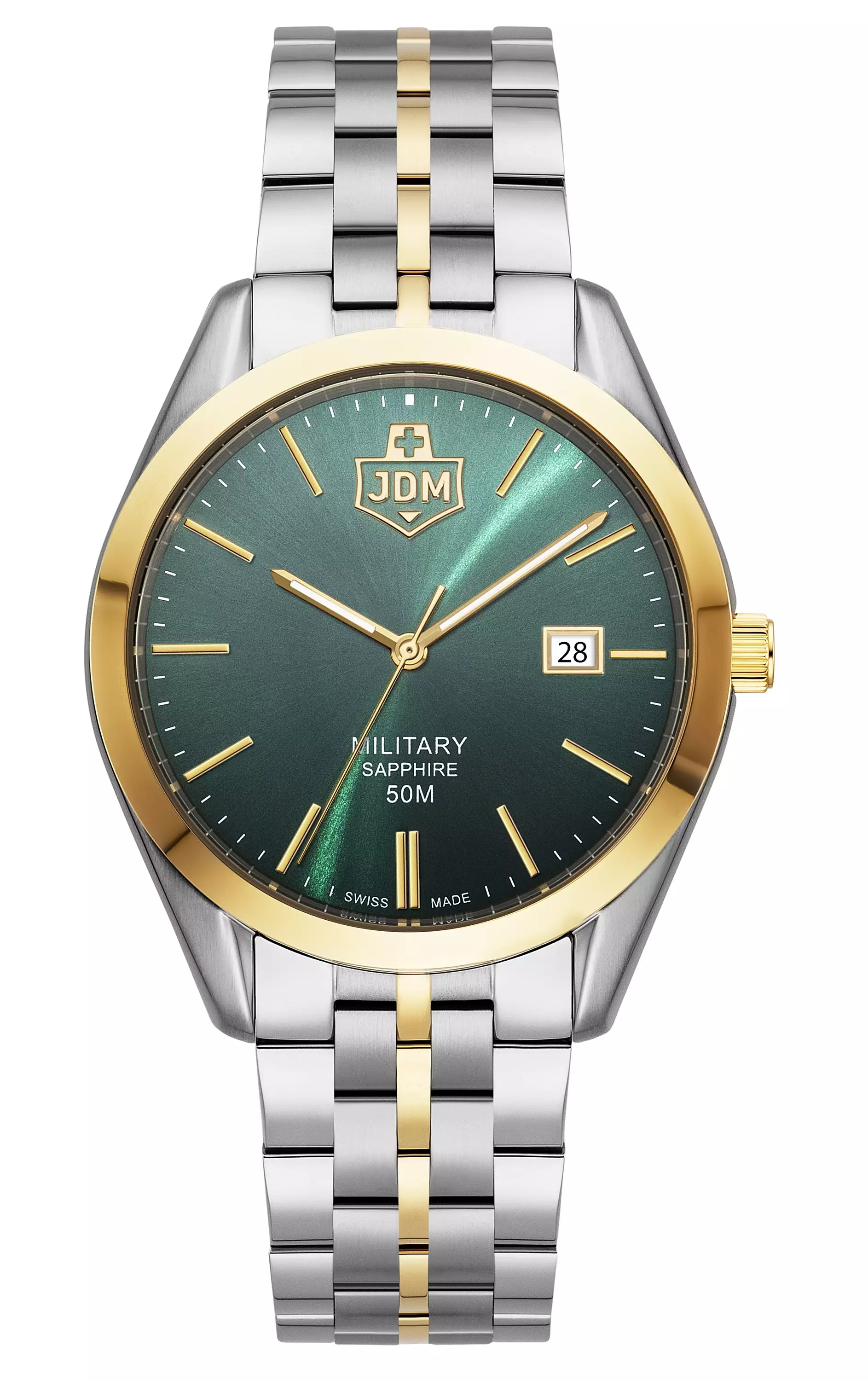 JDM Military Interlaken Gents -rannekello huokuu sveitsiläistä tyylikkyyttä ja laatua. Interlaken Gents -rannekello omaa käytännöllisen päivyrin, vaikka se on muuten pelkistetyn elegantti kokonaisuus muotoilultaan. Tämä rannekello sopii upeasti vaikkapa pukukelloksi! Kellossa on naarmuuntumaton safiirilasi, sekä vesitiiveyttä 50 metriin asti.
