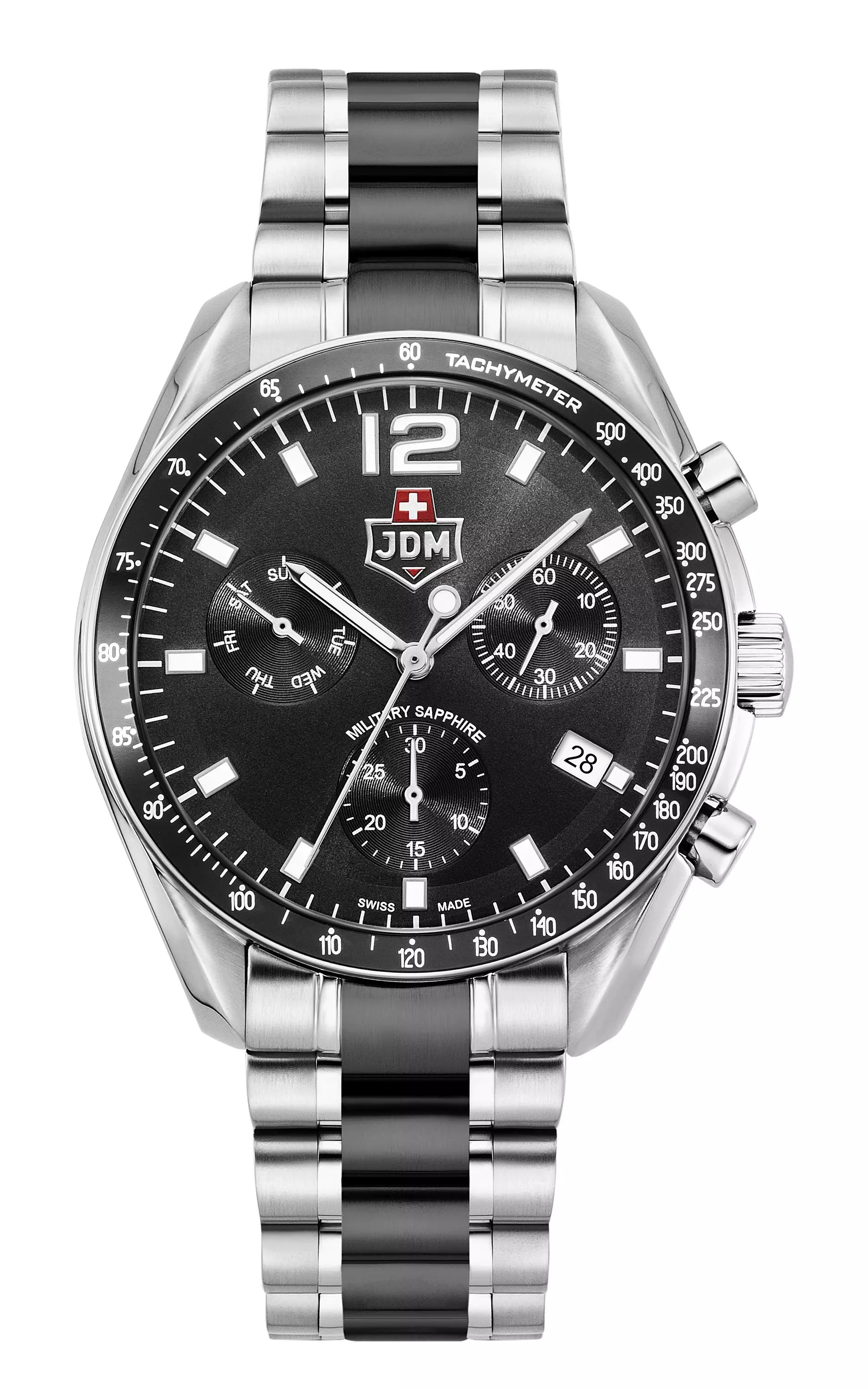 JDM-Military - Sveitsiläistä laatua ajattomassa muodossa Swiss precision-rannekello on tyylikäs valinta niin arkeen kuin juhlaan. Laadukkaan rannekellon varustukseen kuuluu naarmuuntumaton safiirilasi, sekä 10 ATM vesitiiveys. Kellon runko on valmistettu ruostumattomasta teräksestä. Sveitsiläisillä JDM Military -kelloilla on aina valmistajan myöntämä 5. vuoden takuu. Kellotaulun halkaisija 42 mm. Chronograpgh koneisto Ronda Z60.