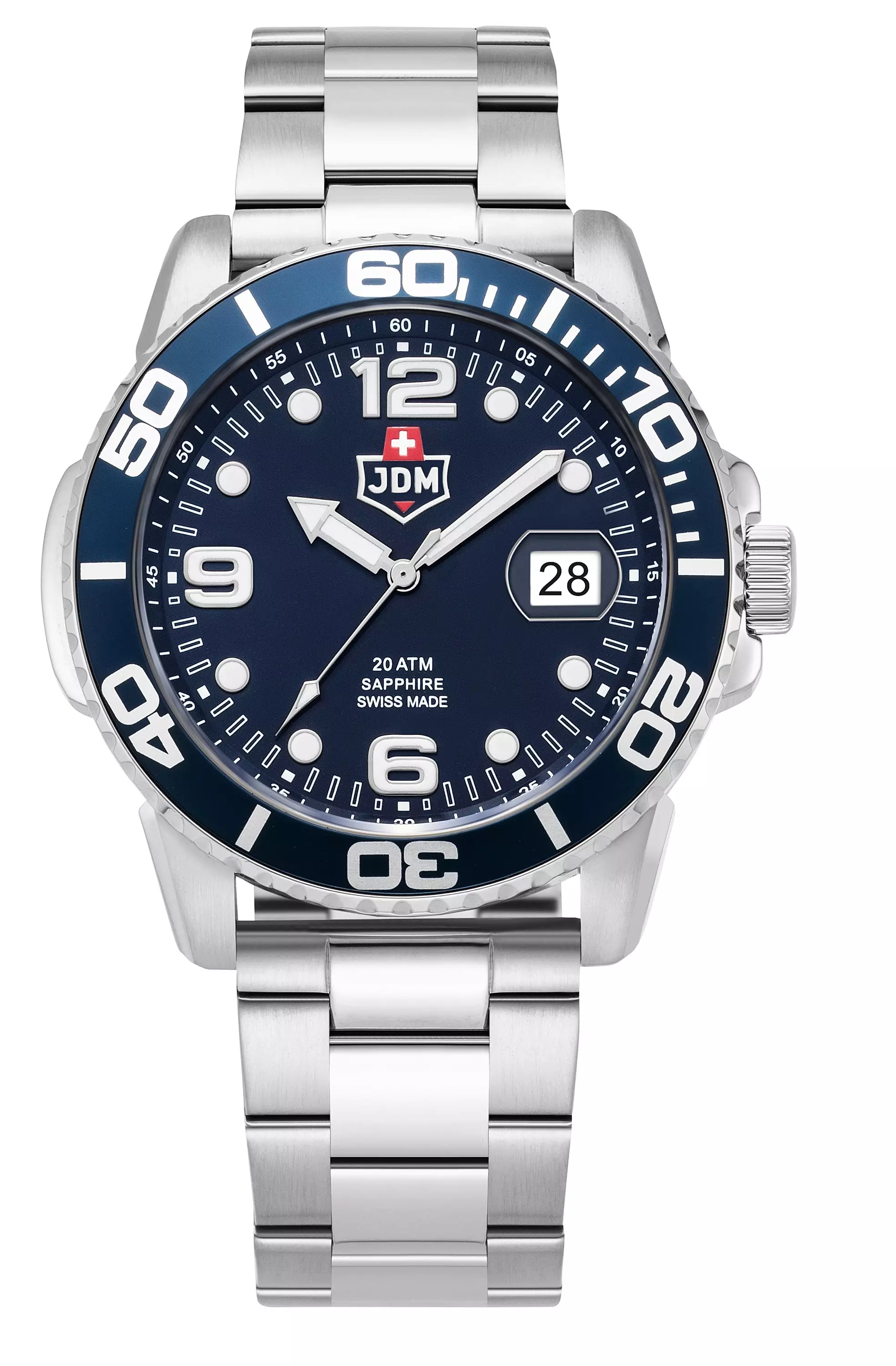 JDM-Military - Sveitsiläistä laatua ajattomassa muodossa. Mike Plus on ainutlaatuinen ja sporttinen miesten rannekello jokaiseen tilanteeseen. Laadukkaan rannekellon varustukseen kuuluu naarmuuntumaton safiirilasi, sekä 200 metriin asti oleva vesitiiveys. Tämä kello kestää kaiken purevista pakkasista, trooppisiin lämpötiloihin! Kellon runko on ruostumatonta terästä. JDM Military kelloilla on myös viiden vuoden takuu.