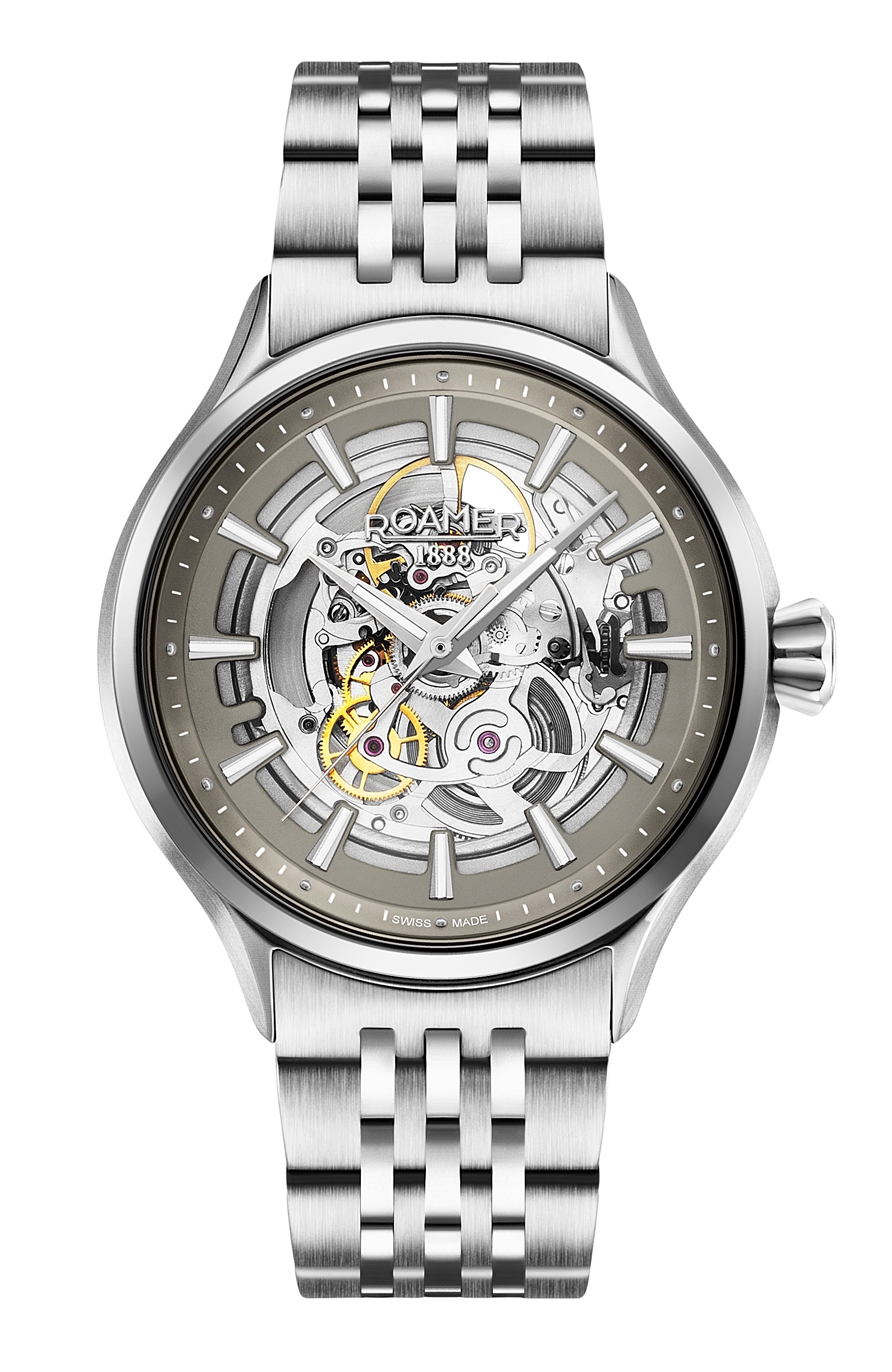 Roamer Of Switzerland - Competence Skeleton III on ainutlaatuinen sveitsiläinen automaatti-kello. Tyylikkään muotoilun viimeistelee kestävä safiirilasi ja teräs kehys. Tämä kello sopii täydellisesti arki-, sekä pukukelloksi. Automaatti-kello on helppokäyttöinen, sillä kellon akku latautuu liikkeessä. Tämän kellon ainutlaatuisuus löytyy upeasti näkyvästä koneistosta.
