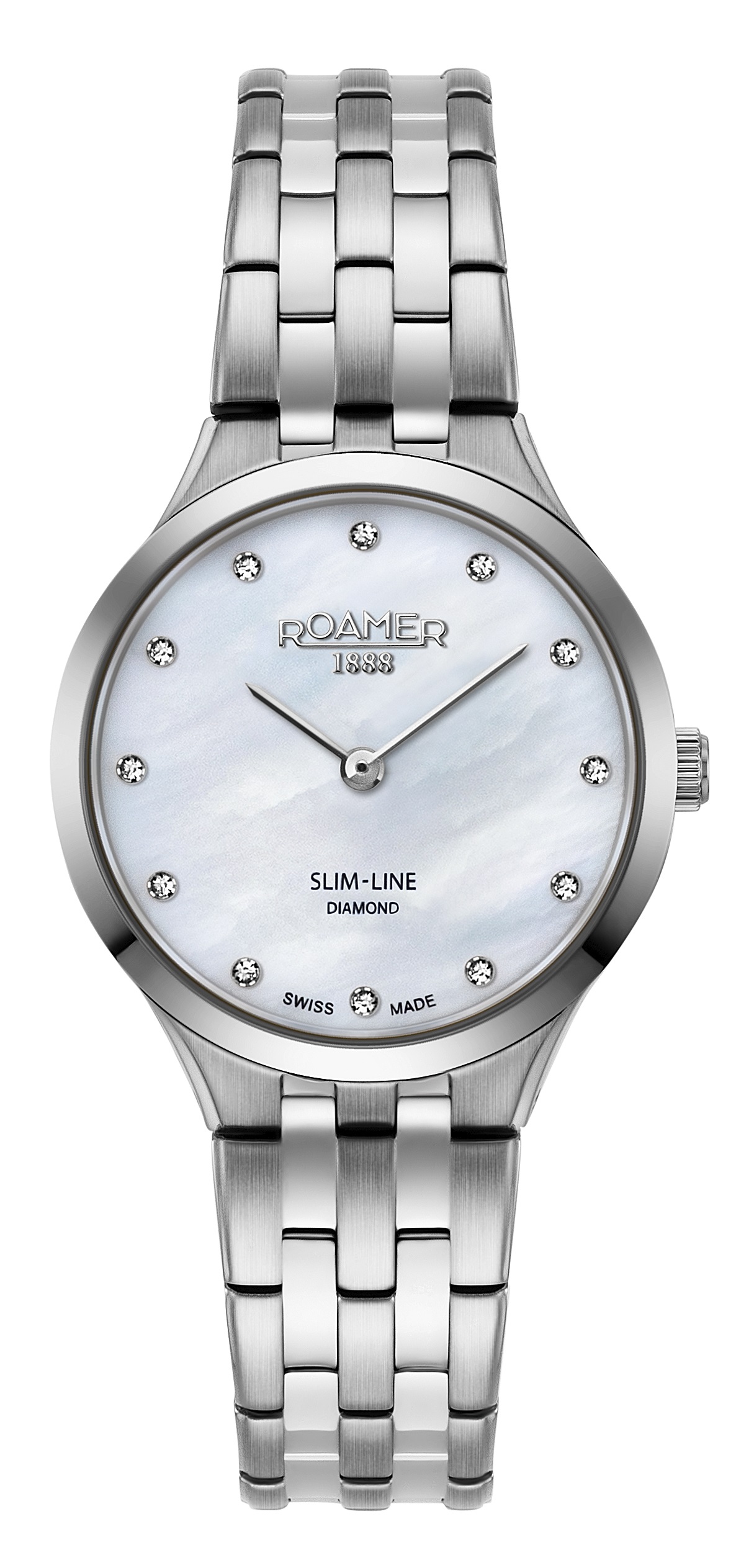 Roamer Slim Line Diamond on oikeilla timanteilla varusteltu siro ja laadukas naisten rannekello. Tyylikäs rannekello on valmistettu kestävästä ruostumattomasta teräksestä ja sen varustukseen kuuluu 50 metriin asti oleva vesitiiveys, sekä safiirilasi. Tämä kello on oikea katseenvangitsija!