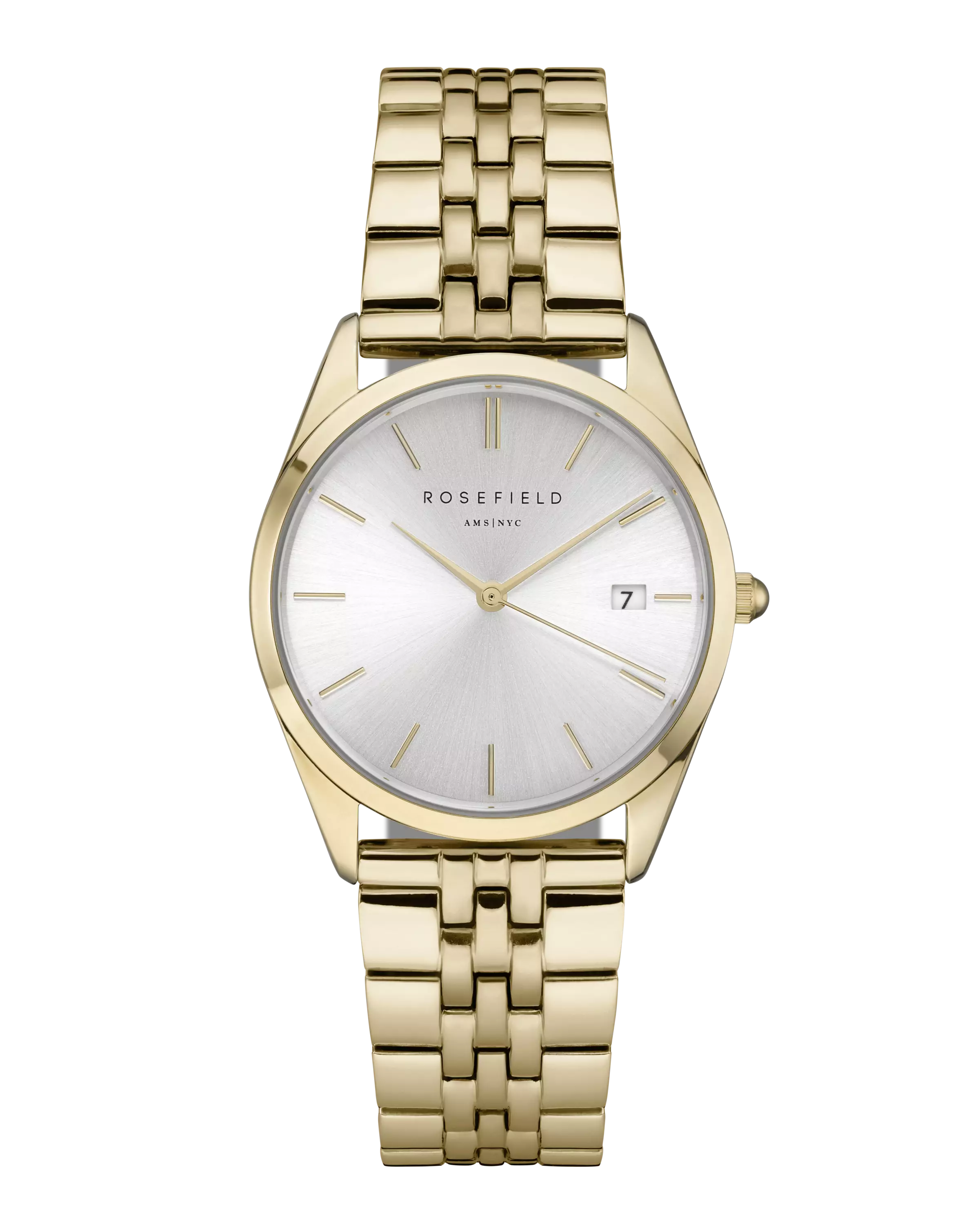Rosefield – Ace on moderni kaunotar retrosta klassikosta. Selkeää hopeista kellotaulua koristaa upea kultainen teräksestä valmistettu ranneke. Ranneke on myös helppo vaihtaa halutessaan, johonkin muuhun Rosefieldin nahka- tai teräsrannekkeeseen. Tämä särmikäs malli on täydellinen asuste kaikkiin tilanteisiin.