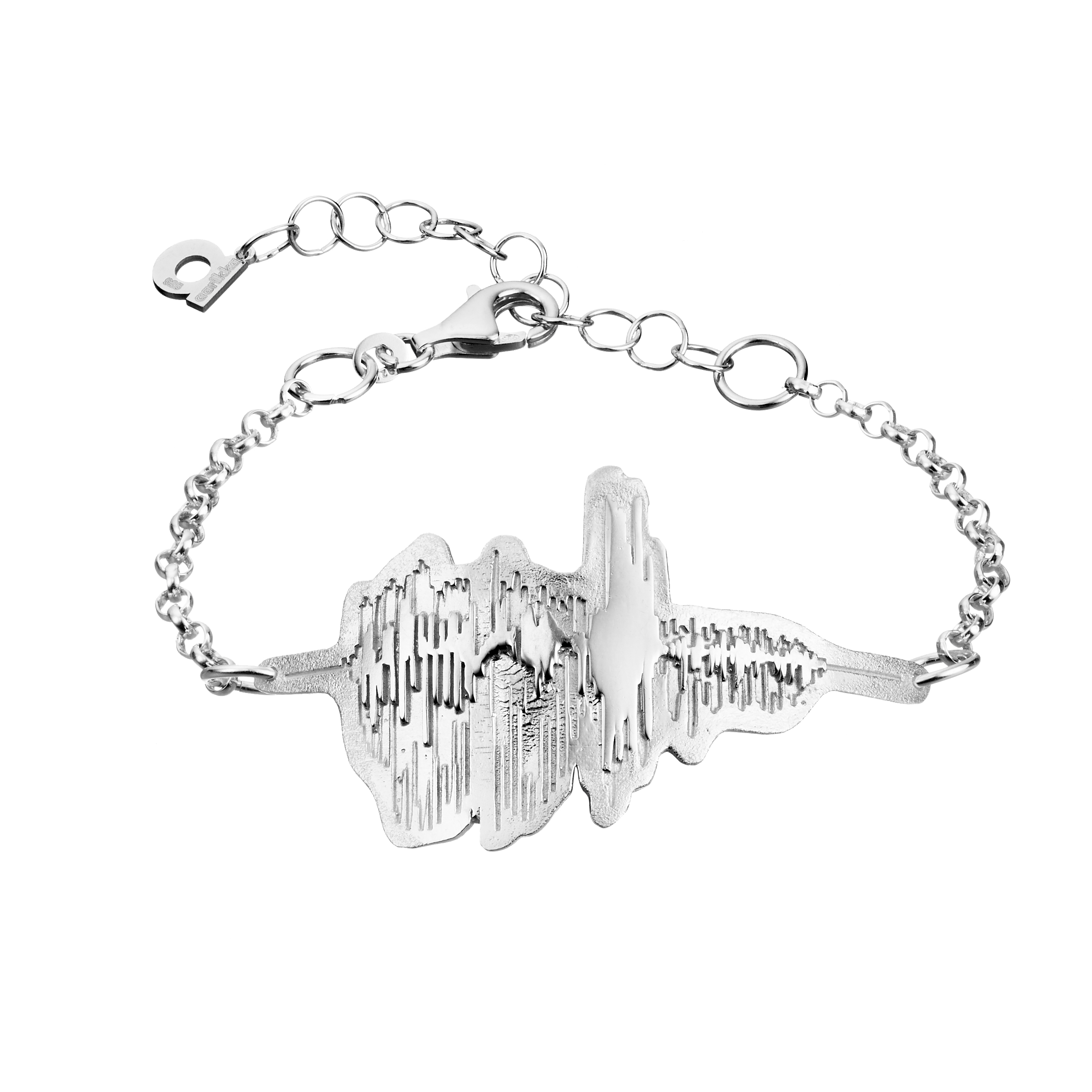 Materiaali: Hopea. Ketju 15-20 cm. Laatan pituus 6 cm. Valmistettu Espanjassa.