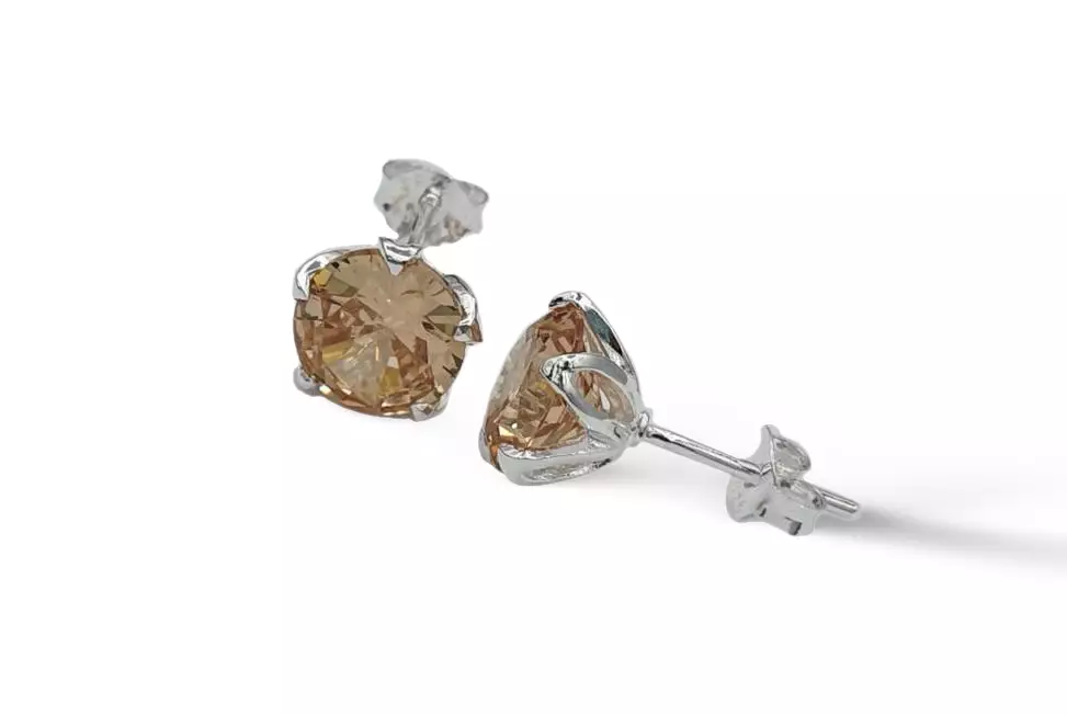 CK Silver hopeasta valmistetut tappikorvakorut shampanjan värisellä korukivellä. Täydellinen valinta niin arkeen kuin juhlaan!