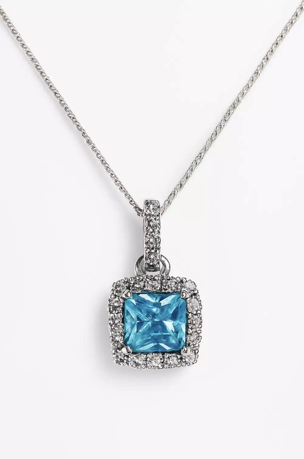 Rodinoitu, hopeinen CK Silver kaulakoru turkoosilla keskikivellä ja zirkonioilla. Ketjun pituus 45 cm