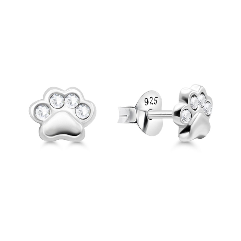 Kauniit 925-hopeasta valmistetut tassu-korvakorut pienillä zirkonia-korukivillä.