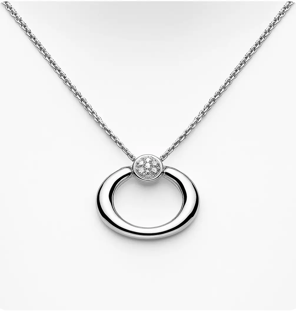 Tällä uniikilla korulla viimeistelet juhla asusi. Laadukas Italiassa valmistettu 18 K valkokullasta valmistettu 42 cm kaulakoru timanttikoristein.