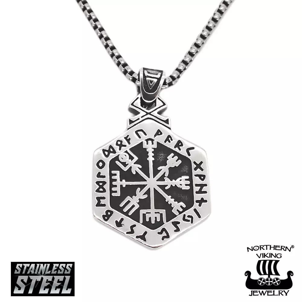 NVJ Hexagonal Vegvisir- Kaulakoru