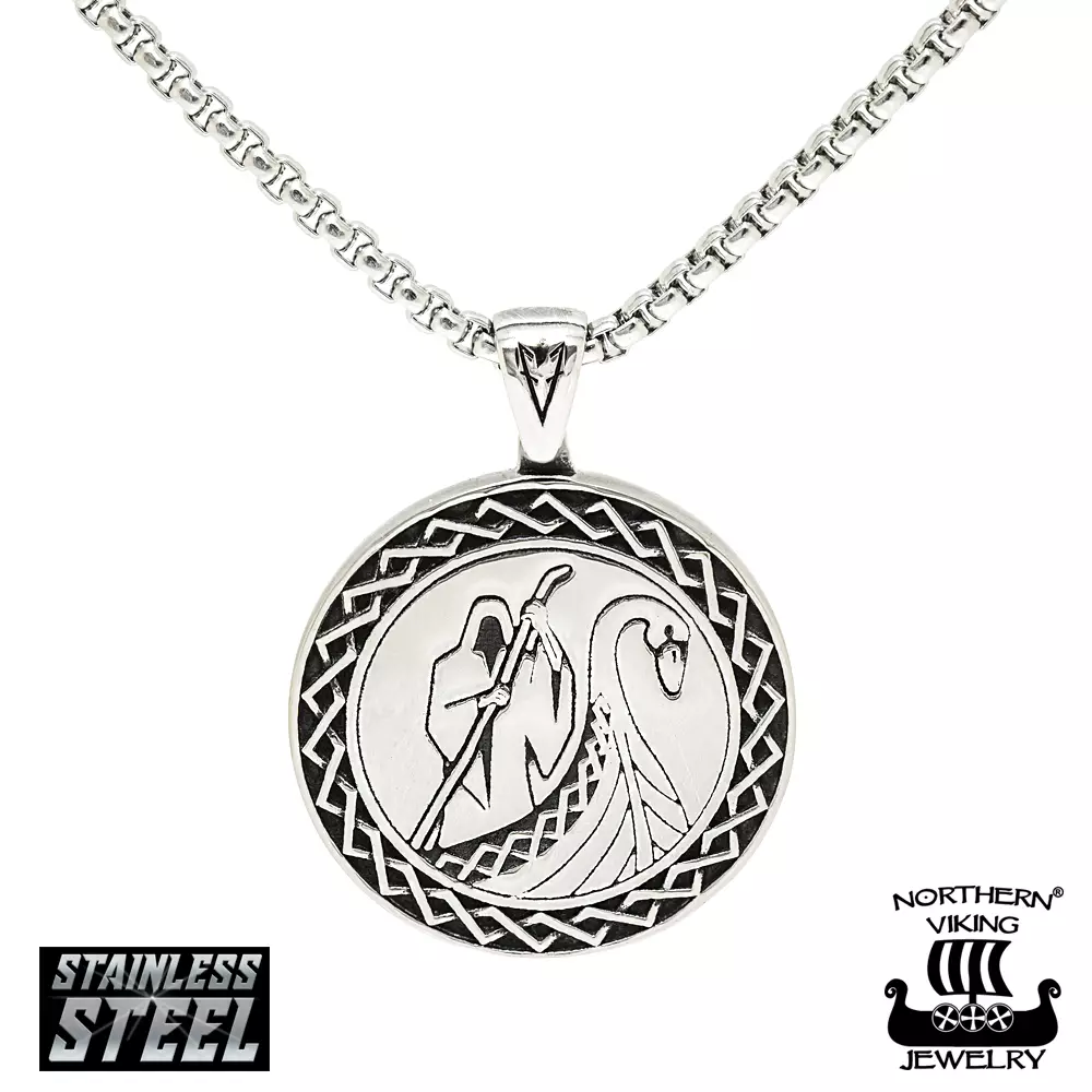 Northern Viking Jewelry®-Riipus "Lautturi By Johan Thorolf" Missä virta päättyy Pohjoiseen, ja ylisen taivaan valot sammuvat, haukkuu rakki raudan karvallinen lähestyvää lauttaa. Musta vesi... Lue lisää