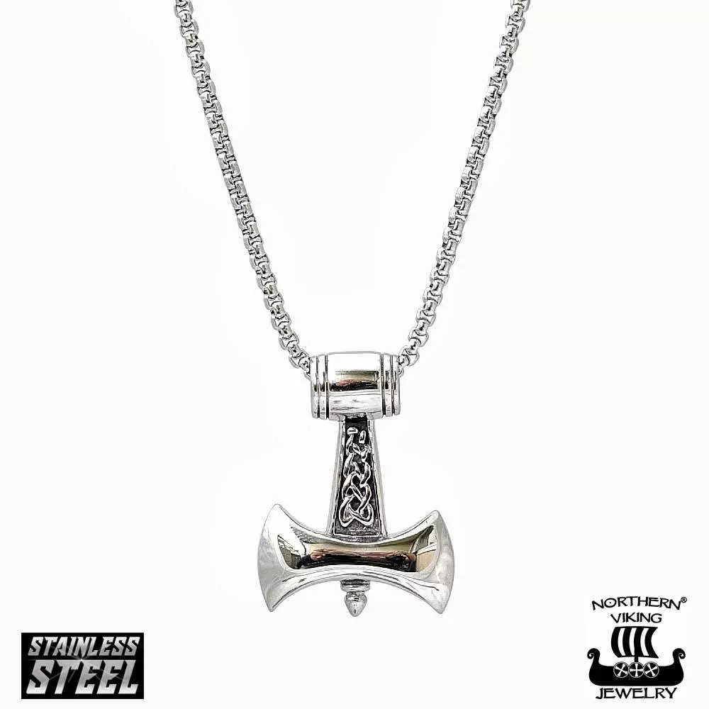 Northern Viking Jewelry-Riipus "Plain Celtic Thorin Vasara" Thorin Vasara: Sotalaiva odottaa. Soturikuningas miehineen istuu puoliympyrään kylän sokean tarinankertojan ympärille. Kuningas ottaa kaulaltaan Thorin riipuksen ja ojentaa sen tarinankertojalle. “Kerro meille Thorin, Odinin pojan kamppailusta, jotta mieheni saavat rohkaistusta.”, kuningas sanoo. Tarinankertoja tarttuu koruun ja sulkee silmänsä. “Minä näen kaiken uudelleen ja kerron niin kuin tapahtunut on. Thor, Odinin poika, seilasi näitä meriä miestensä kanssa. Heidän laivansa saavutti avomeren, ja laineet kävivät suurten käräjäkivien korkuisina. Yhtäkkiä taivas tyyntyi ja samoin meri ja meren aallot. Meri oli kuin vasta puhelluttua lasia. Sitten kaikkialla kiehui, aurinko pimeni ja meren syvyyksistä nousi esiin Midgårdsormen, suuri käärme, joka kietoi valtaisan ruumiinsa laivan ympärille. Miehet tarttuivat pelottomina miekkoihinsa, mutta kaikkein pelottomin heistä oli Thor, joka tarttui vasaraansa Mjölneriin. Tarttuessaan aseeseensa Thor huusi voimasanoja, ja äkkiä taivas tummui ja kaikkialla salamoi, ja kaikki taivaan ja myrksyn voimat olivat hänen, Thorin vallassa. Suurella ukkosen voimalla Thor löi käärmeen ja teki sen nahkasta miehilleen panssarit. Thorin voima on tässä korussa. Kanna sitä ylväästi ja pelottomana.” Northern Viking Jewelry-riipus tyylikkäällä Rolo Link-ketjulla. Riipus sekä ketju on valmistettu kestävästä 316L Teräksestä. Riipuksen mitat: - Korkeus: 4,7 cm - Leveys: 3,4 cm - Paino: 23 g - Materiaali: 316L Kirurginteräs - Riipuksen lenkistä mahtuu 0,7 cm paksuinen ketju Ketjun mitat: - Paksuus 3 mm - Pituus 50cm Riipus ja ketju toimitetaan uniikissa Northern Viking Jewelry®-Juuttipussissa.