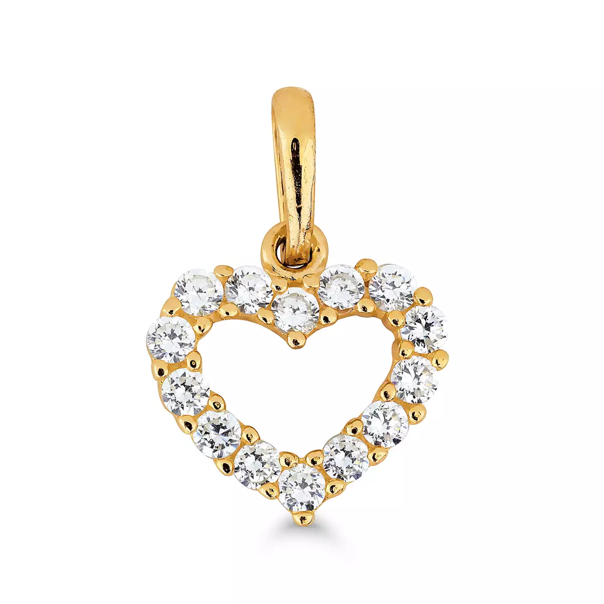 Kultariipus sydän zirkoneilla -375/1000 (9K) keltakultaa -Kiiltävä pinta -Synteettiset zirkonit – Leveys 9,15mm – Korkeus 12,75mm, ilman lenkkiä 7,7mm