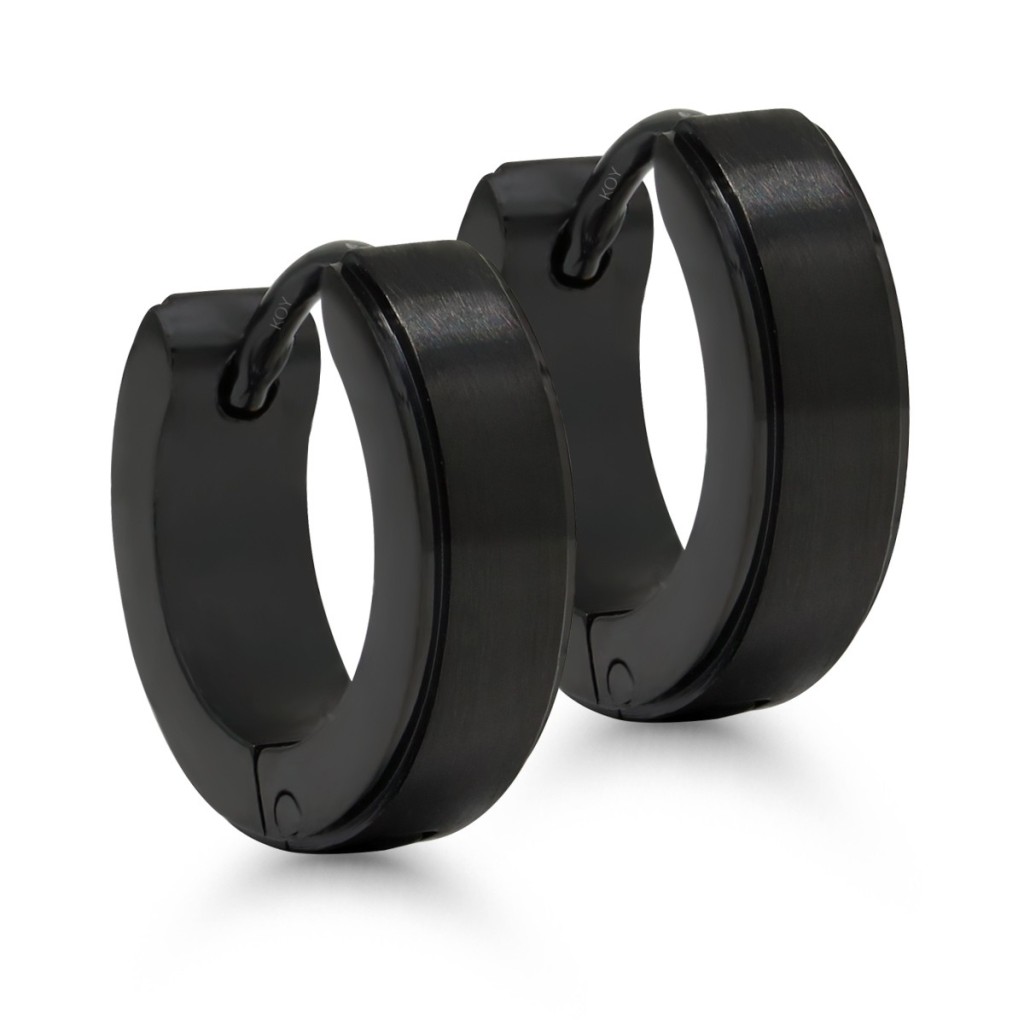 Koko mustat teräksestä valmistetut korvarenkaat. Leveys 4mm., halkaisija 13mm.
