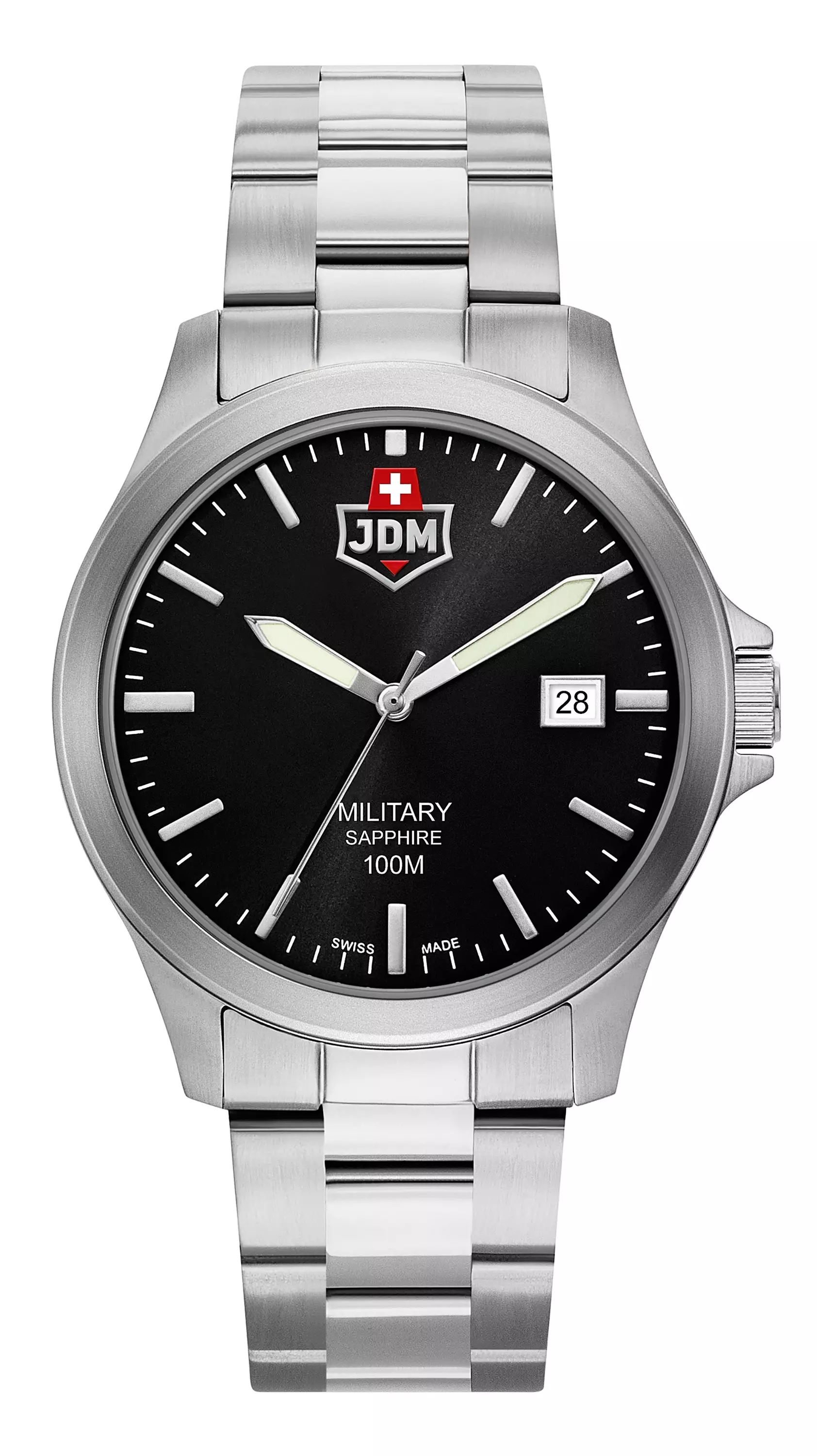 JDM-Military - Sveitsiläistä laatua ajattomassa muodossa. Alpha II on ainutlaatuinen ja sporttinen miesten rannekello jokaiseen tilanteeseen. Laadukkaan rannekellon varustukseen kuuluu naarmuuntumaton safiirilasi, sekä 10 ATM vesitiiveys. Tämä kello kestää kaiken purevista pakkasista, trooppisiin lämpötiloihin! Kellon runko ja ranneke on valmistettu ruostumattomasta teräksestä, tai vaihtoehtoisesti aidosta nahasta.