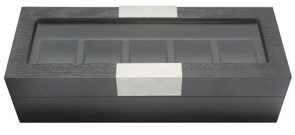 Pidä kellosi järjestyksessä tässä tyylikkäässä tummassa kellokotelossa. Kotelossa on paikat viidelle kellolle. Puisessa kotelossa on läpinäkyvä päällinen, josta näkee sisällä olevat kellot. Tämä on myös upea lahjaidea kellojen ystävälle.