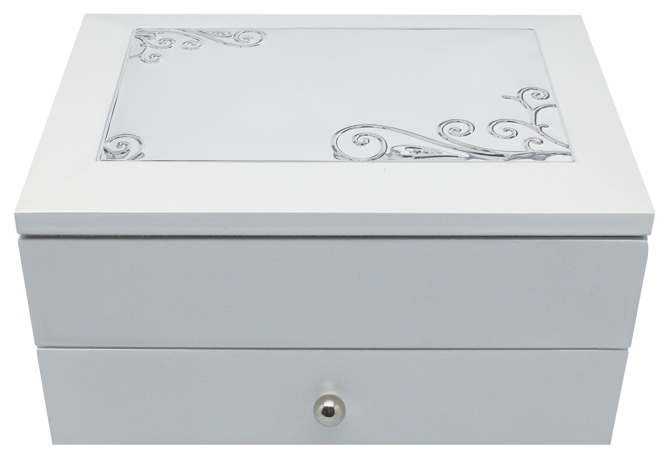 Pidä korusi järjestyksessä tässä klassisessa korurasiassa. Tässä kauniissa valkoisessaa korurasiassa on hyvin tilaa kaikille koruillesi. Kahteen kerrokseen saat mahtumaan niin korut kuin kellotkin. Ensimmäisessä kerroksessa on erillinen tyyny sormuksille, tai korvakoruille.