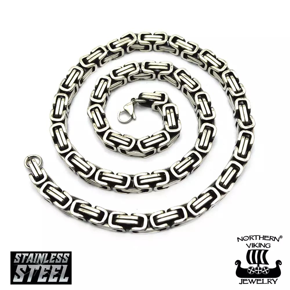 Northern Viking Jewelry-Kaulakoru "Clasp Byzantine" Kaulaketjun mitat: - Pituus: 60 cm - Leveys: 0,8 cm ?- Materiaali: 316L Kirurginteräs - Paino: 137 g Kaulakoru toimitetaan uniikissa Northern Viking Jewelry®-Juuttipussissa.