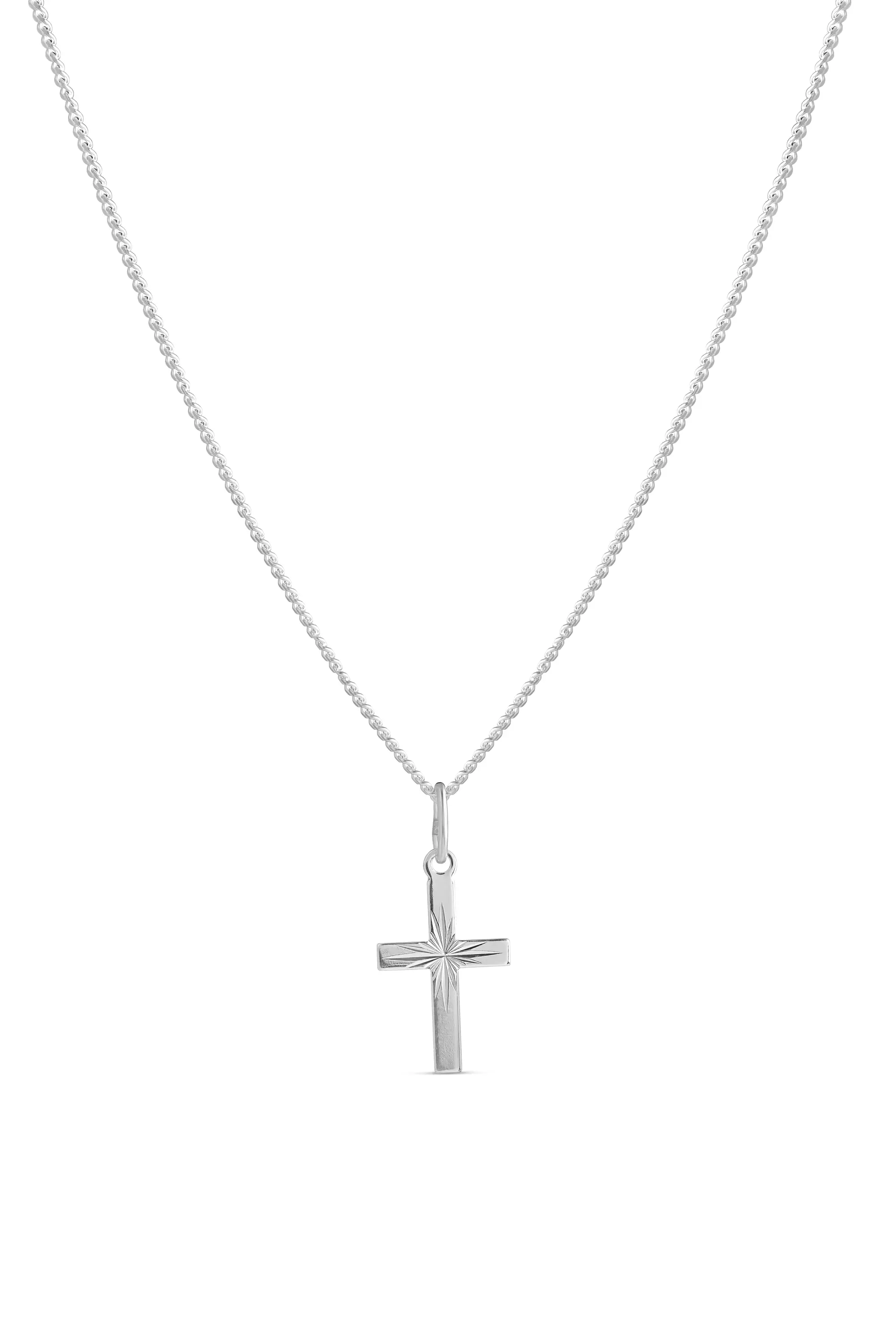 Hopeinen timanttileikattu ristiriipus, elämän tärkeitä hetkiä varten! 925 hopeasta valmistettu klassinen ristiriipus on ainutlaatuinen tyylikkään timanttileikkauksen ansiosta. Riipus roikkuu tyylikkäässä panssariketjussa.